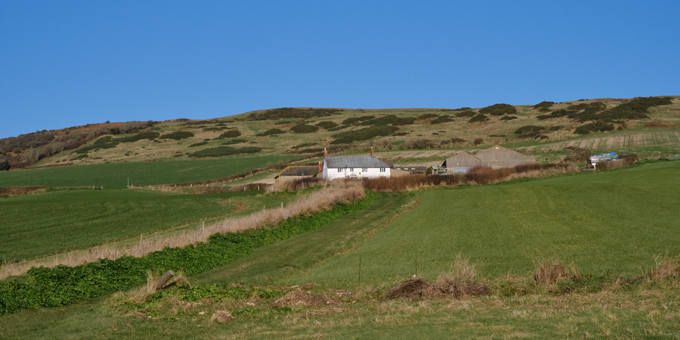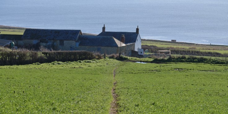 This section of the route was of course all downhill, initially the path was through an area of thicket and brambles, before opening up in the approach towards East Bexington Farm.