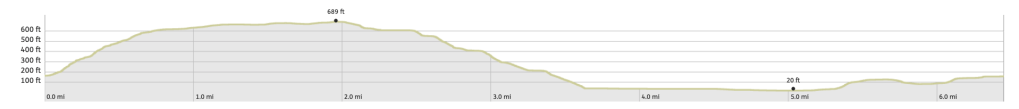 | Ascent | 709 ft | Highest point | 689 ft | Lowest point | 20 ft |